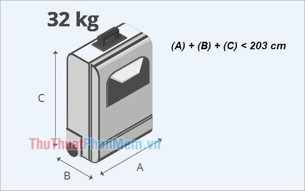 - Tổng kích thước theo ba chiều (dài, rộng, cao) không được vượt quá 203 cm.