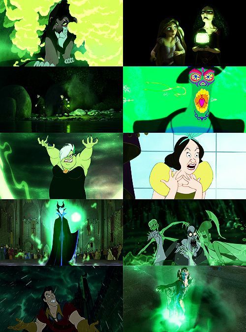 Màu xanh lá cây thường liên kết với thiên nhiên, nhưng trong các bộ phim Disney, màu tím thường gắn với sự lãng mạn và bay bổng. Tuy nhiên, cả hai màu này thường mang một ý nghĩa khác khi luôn liên quan đến những nhân vật phản diện.