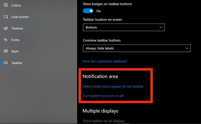 Nếu ta xem kỹ trong phần Settings của Windows 10 sẽ thấy khu vực này được gọi là “Notification area” ở khắp mọi nơi. Nhấp chuột phải vào Taskbar, chọn Properties, vuốt xuống sẽ thấy mục Notification area, tên rất rõ ràng.