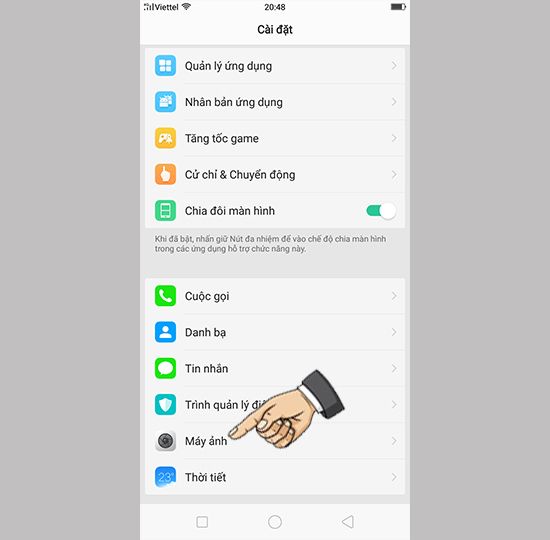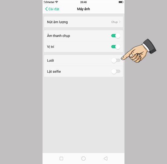 Cách bật đường lưới khi chụp ảnh trên Oppo F5 như sau: