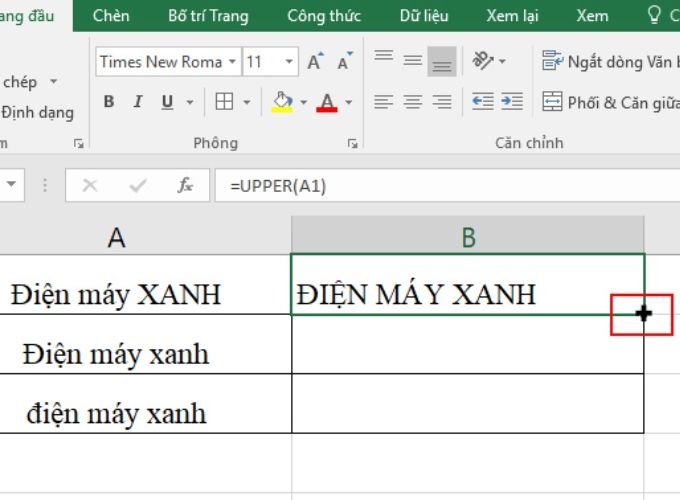- Bước 2: Nhập Công Thức: =UPPER(A1) (Thay A1 bằng ô cần chuyển đổi).