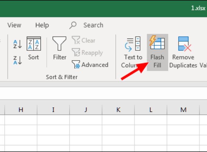 - Bước 3: Nhấn Ctrl + E hoặc Chọn “Flash Fill” Trong Ribbon Excel.