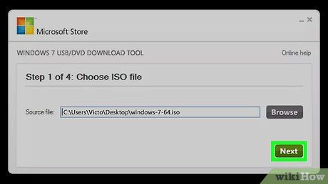 Chọn tập tin ISO đã tải về. Trong cửa sổ mở ra, bạn sẽ nhấp vào Duyệt (Duyệt), sau đó chọn tệp ISO của Windows 7 và nhấp vào Mở (Mở).