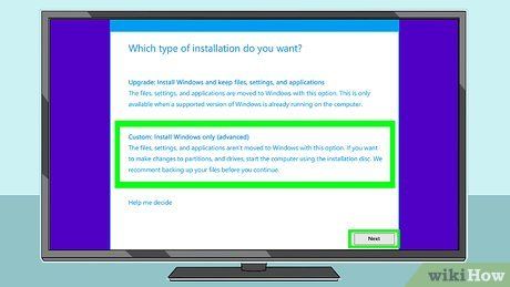 Chọn cài đặt tùy chỉnh. Đánh dấu vào ô 'Tùy chỉnh', sau đó nhấn Next.