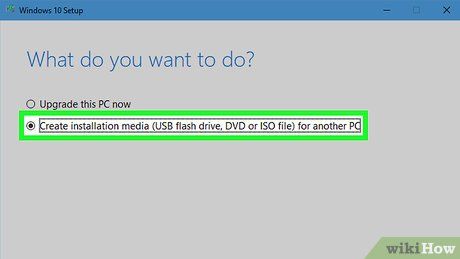 Tải công cụ cài đặt Windows. Truy cập trang tải Windows 10, rồi nhấp vào Download tool now (Tải công cụ ngay) dưới cùng trang.