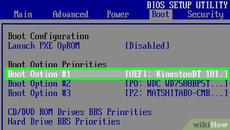 Tìm mục 'Thứ tự khởi động'. Mục này thường nằm trong thẻ Nâng cao hoặc Lựa chọn Nâng cao, nhưng mỗi trình BIOS có cách hiển thị khác nhau. 'Thứ tự khởi động' sẽ liệt kê các ổ đĩa cài đặt, bao gồm ổ cứng và ổ đĩa CD.