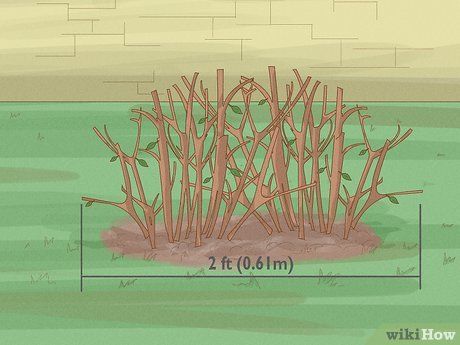 Tỉa từng cành khoảng 30 cm từ mặt đất. Bạn có thể tỉa cành đến độ cao này mà không gây hại cho cây. Sử dụng kéo tỉa cành hoặc cưa tay để tỉa từng cành nếu cần. Hãy cố gắng tạo hình tròn cho ngọn cây.