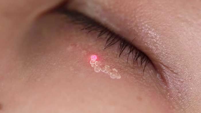Mụn thịt (gọi là Syringomas) là những đốm nhỏ trên da, kết nối với da qua một cuống nhỏ. Chúng thường không gây khó chịu, xuất hiện ở vùng má và mí mắt, cũng như ở bụng, ngực và khu vực sinh dục.