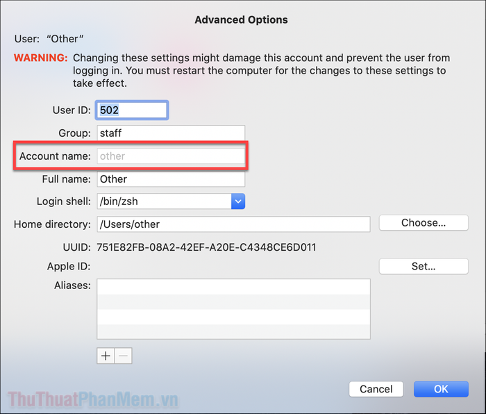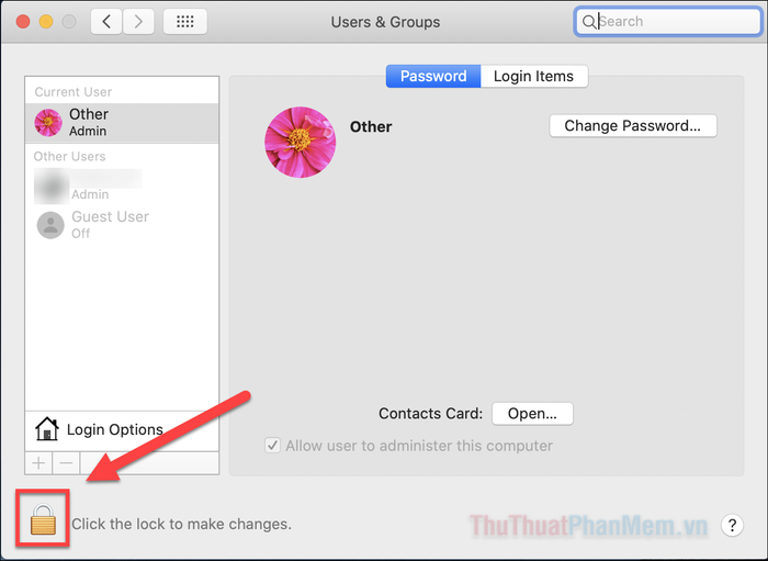 Nếu bạn vẫn có quyền truy cập ít nhất một tài khoản khác, bạn có thể đăng nhập vào tài khoản đó và truy cập danh sách tất cả tên người dùng đã đăng ký trên máy Mac.