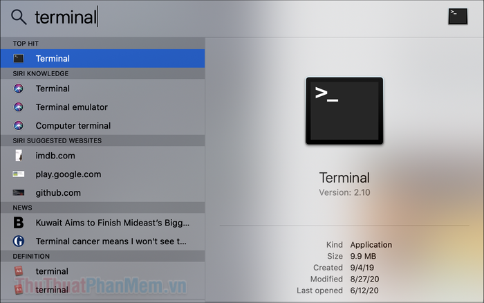 Để kiểm tra thông tin này, hãy mở ứng dụng Terminal và chạy lệnh sau: