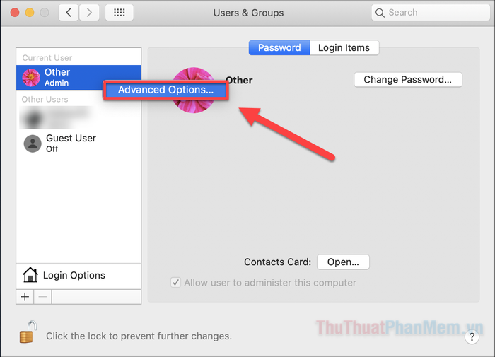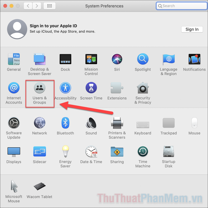 - Mở “Tùy chọn Hệ thống >> Người dùng & Nhóm”.