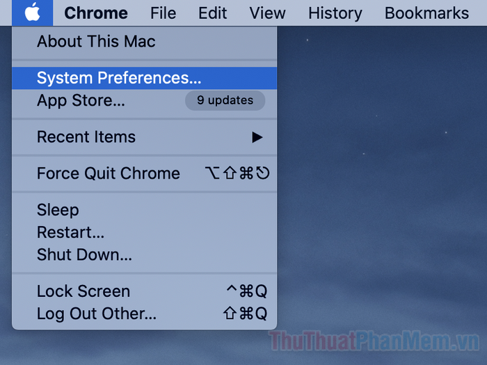 - Nhấp vào biểu tượng quả táo ở góc màn hình và mở Cài đặt Hệ thống...