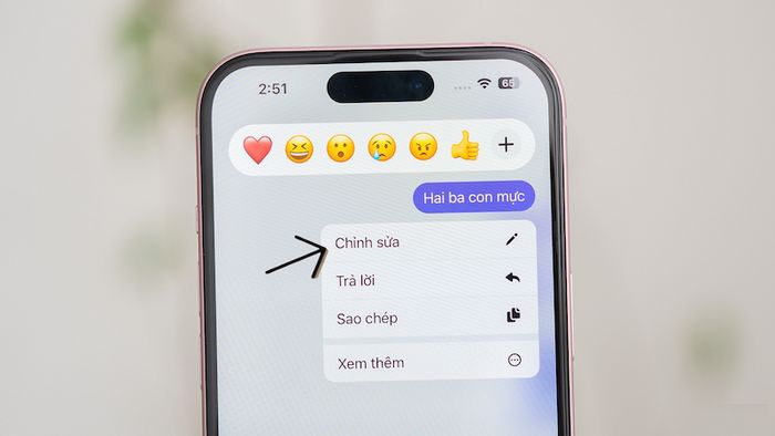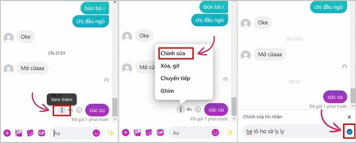 Bước 2: Chọn tùy chọn Chỉnh sửa và sửa nội dung tin nhắn cần gửi đi. Nhấn biểu tượng dấu tích hoặc Enter để hoàn tất.
