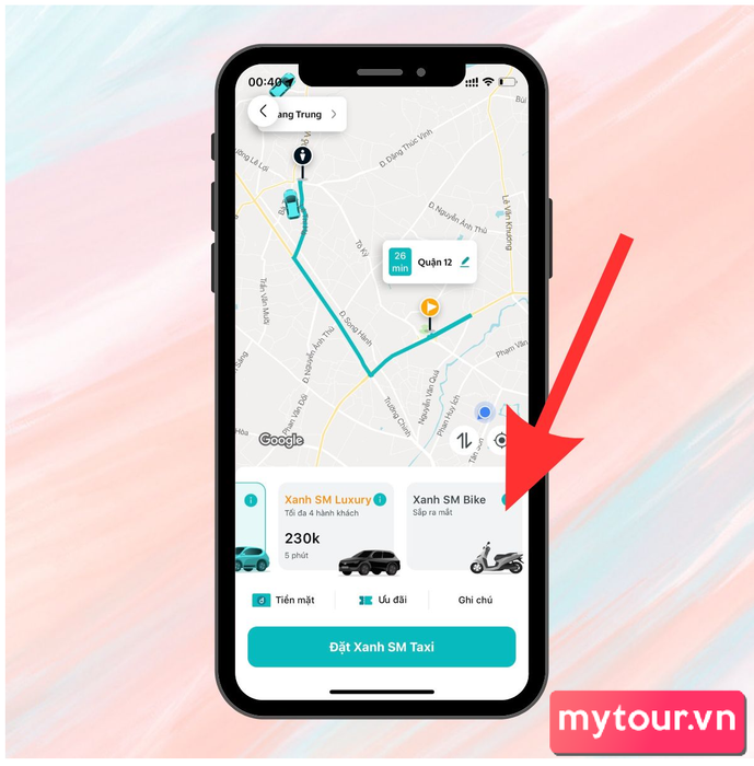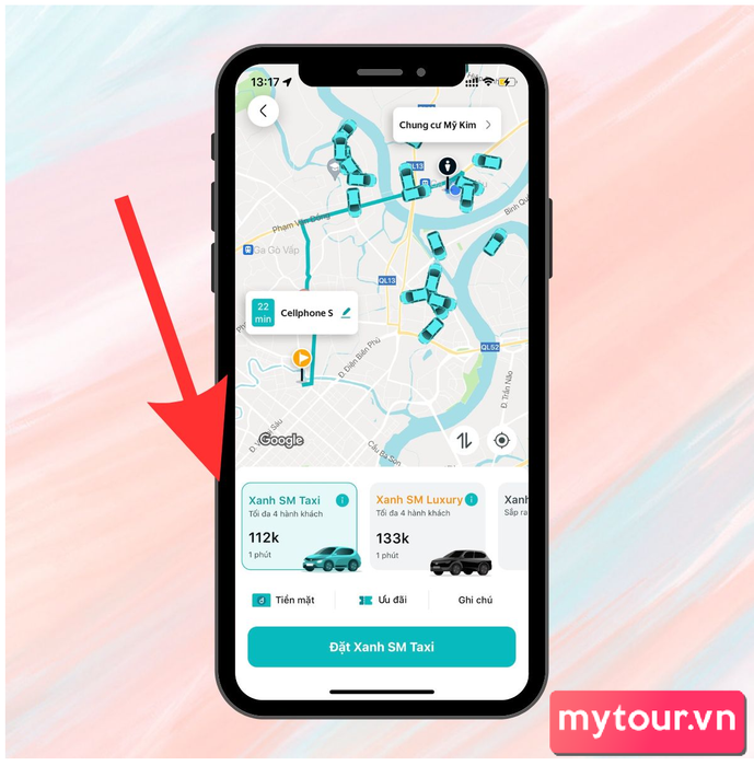 nhấn nút Đặt Xanh SM Taxi hoặc Đặt Xanh SM Luxury.