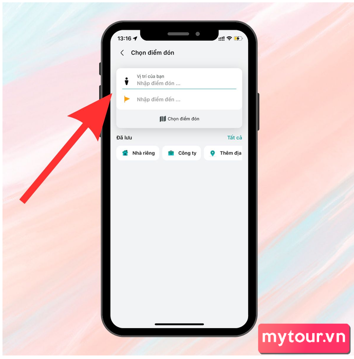 tự động xác định vị trí củabạn, người dùng có thể lựa chọn vị trí hiện tại hoặc chuyển đến điểm đón khác