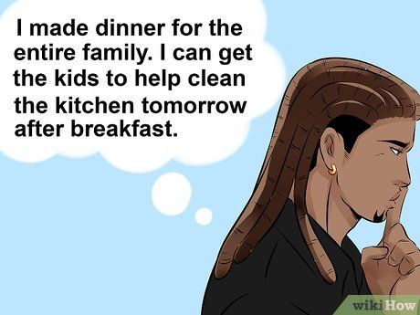- Ví dụ, nếu bạn nói, “Tôi quá lười biếng. Tôi thậm chí không lau dọn nhà bếp hôm nay”, thay đổi kỳ vọng của bản thân bằng cách nói, “Tôi đã chuẩn bị bữa tối cho gia đình. Tôi có thể nhờ con cái giúp dọn dẹp nhà bếp sau bữa ăn sáng vào ngày mai”.