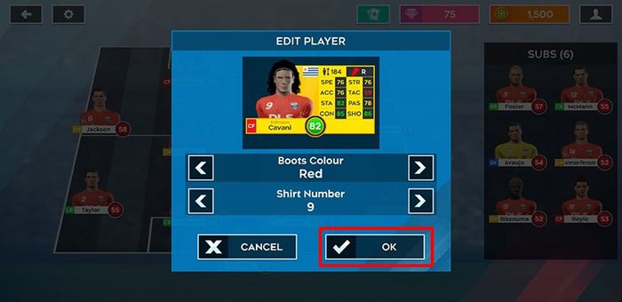 Tại đây, bạn có thể điều chỉnh màu sắc giày và số áo của cầu thủ đội bóng. Khi hoàn thành, bạn chọn OK.