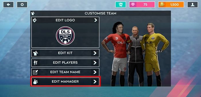 Mở game và chọn mục tùy chỉnh đội bóng ở góc bên trái màn hình.