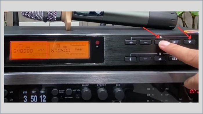Sử dụng phím LÊN hoặc XUỐNG để điều chỉnh tần số của micro