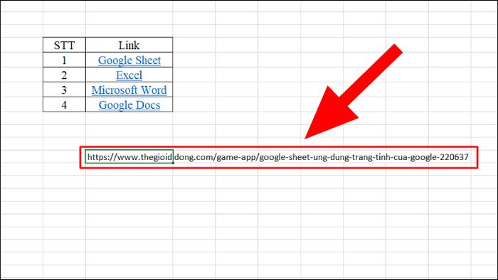 Dán đường dẫn liên kết vào bất cứ ô nào