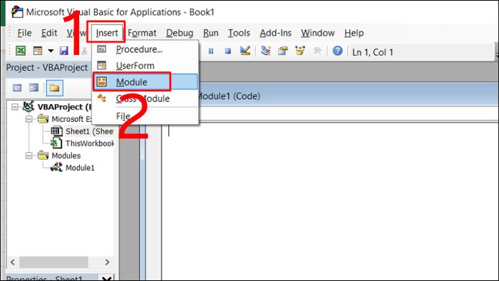 Bước 1: Giữ ALT + Fn + F11 để mở hộp thoại Microsoft Visual Basic for Applications.