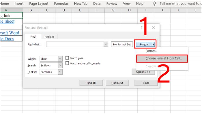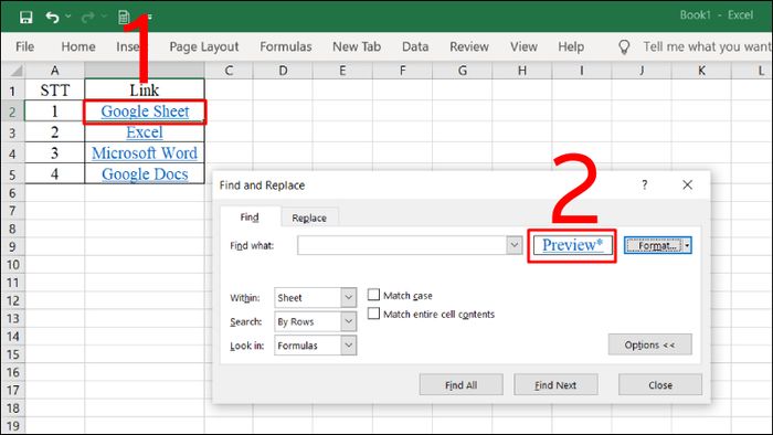 Áp dụng công cụ Find and Replace để dễ dàng xác định vị trí các ô chứa liên kết trong Excel. Sau đó, bạn có thể nhấn trực tiếp vào địa chỉ ô để xem đường link liên kết.