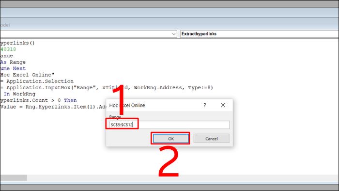 Bước 3: Nhấn F5 để chạy mã > Chọn những Hyperlink bạn muốn trích xuất > Nhấn OK.