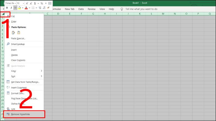 Trả lời: Ngoài cách lấy đường link, bạn cũng có thể xóa Hyperlink trên Excel bằng cách: Nhấn Ctrl + A để chọn toàn bộ bảng > Chuột phải vào biểu tượng tam giác tại ô đầu tiên > Nhấn Remove Hyperlinks > Xem kết quả.