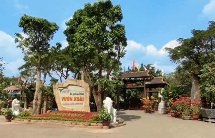 Đến với Vườn Xoài bạn sẽ cảm giác như lạc vào một vùng thiên nhiên hoang dã rộng lớn, với những con đường nhỏ quanh co uốn lượn, hàng cây cọ dầu xanh mát, cỏ cây hoa lá tiếng chim hót, suối reo đan xen tạo nên một vườn xoài thơ mộng yên bình.