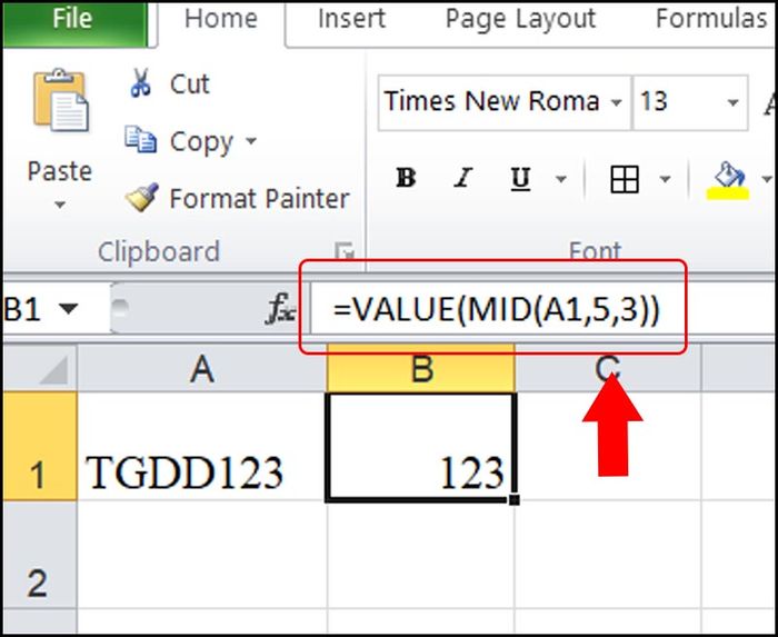 Sử dụng hàm MID để tìm giá trị số