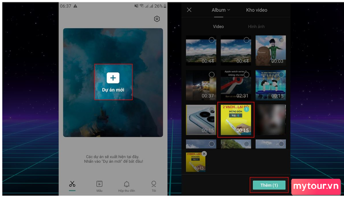 Bước 1: Khởi tạo Dự Án - Mở ứng dụng CapCut và bắt đầu một dự án mới. Chọn hình ảnh hoặc video bạn muốn ghép và kéo chúng vào dự án. Nhấn 'Ghép' để bắt đầu quá trình ghép ảnh.