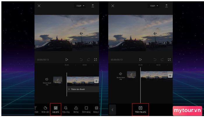 Chọn video bạn muốn sử dụng và nhấn 'Thêm.' Bạn có thể chọn nhiều video để tạo sự đa dạng trong nội dung của bạn. Đồng thời, nhấn 'Lớp phủ' để bắt đầu quá trình chèn ảnh.