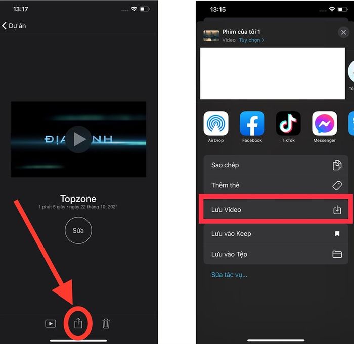 Sau khi chọn tùy chỉnh, nhấn Xong phía trên. Trailer hoàn chỉnh, bạn có thể chỉnh sửa nếu cần hoặc chia sẻ và Lưu video vào thư viện.