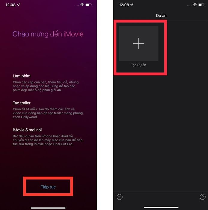 Bước 2: Khởi chạy iMovie, chọn Tạo dự án.