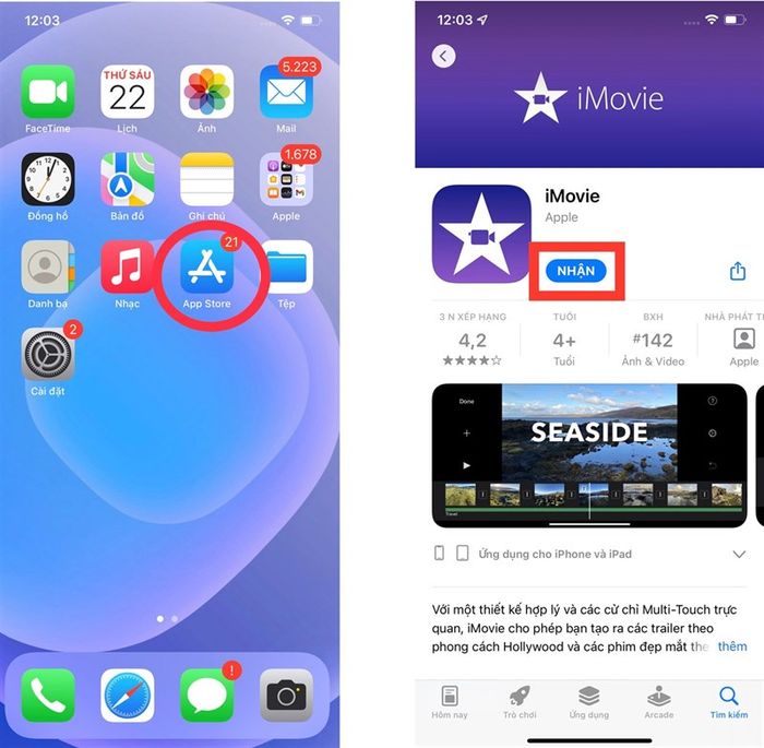 Bước 1: Mở App Store, tìm và tải xuống ứng dụng iMovie.