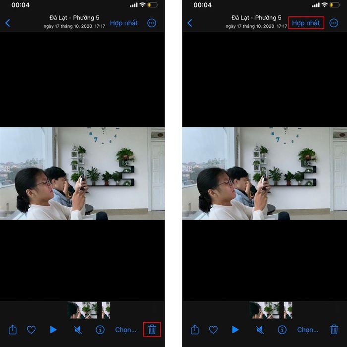 Phần 3: Tại đây, tất cả những bức ảnh trùng sẽ được liệt kê một cách rõ ràng. Chỉ cần chọn ảnh và bấm vào biểu tượng thùng rác để xóa, hoặc chọn Hợp nhất để ghép lại thành một.