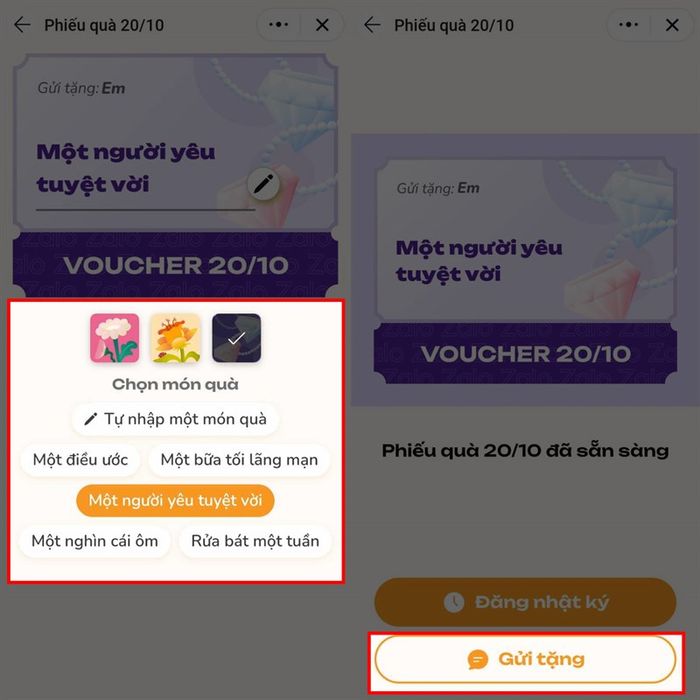 Bước nâng cấp: Gửi lời chúc và thiệp 20/10 trên Zalo