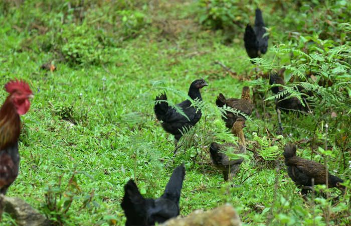 Là một món ăn hoang dã ngon không thua kém thịt lợn bản. Những con gà được nuôi thả tự nhiên trên các sườn đồi, thịt chắc, thơm ngon, mỗi con nặng khoảng 1kg. Để thưởng thức, bạn nên thông báo trước cho chủ nhà để họ chuẩn bị, vì việc bắt gà thường diễn ra vào buổi tối.