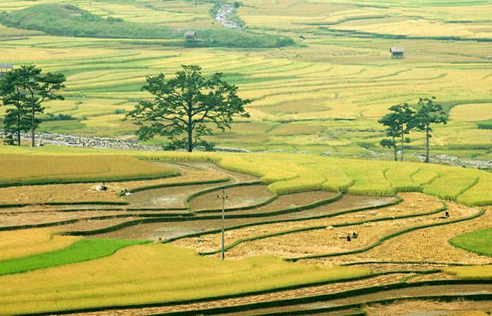 Câu hỏi lâu nay của dân gian “Tất đất tấc vàng” thật sự mang ý nghĩa sâu sắc, đặc biệt thấm vào tâm hồn nhất tại... Mù Cang Chải. Từ lâu, qua hàng thế hệ, người dân tộc Mông đã thực hiện ý tưởng này bằng sự cần cù và kiên nhẫn trong lao động sản xuất, biến vùng đất đồi dốc thành những cánh đồng lúa bậc thang xen kẽ. Mỗi bước điều mang lại những hạt thóc, gạo là nguồn sống cho con người, đồng thời thể hiện sự kiên cường trước mọi khó khăn của đất trời và thời tiết khắc nghiệt.