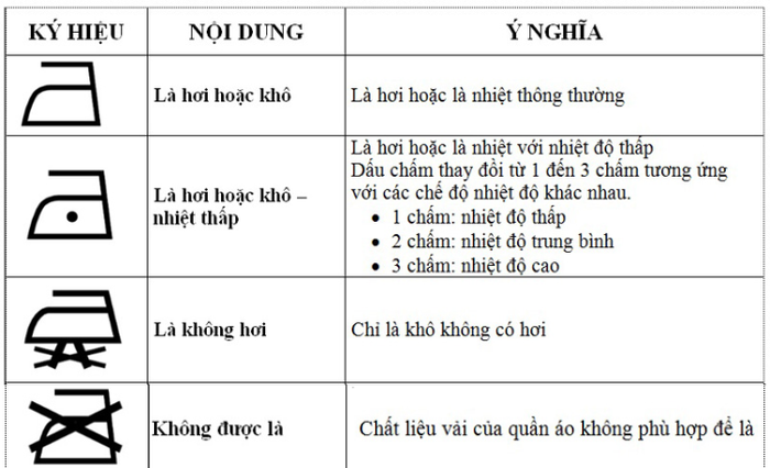 Biểu tượng với chiếc bàn là sẽ hướng dẫn bạn cách ủi từng loại vải một cách hiệu quả, giữ cho trang phục luôn gọn gàng và bền đẹp.