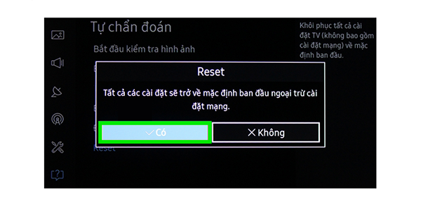 Bước 6: Khi hiện thông báo xác nhận, chọn Có để thực hiện Reset Tivi. Ngược lại, chọn Không.