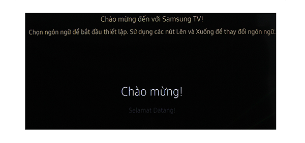 Bước 1: Chọn Chào Mừng để sử dụng Tiếng Việt trên Tivi.