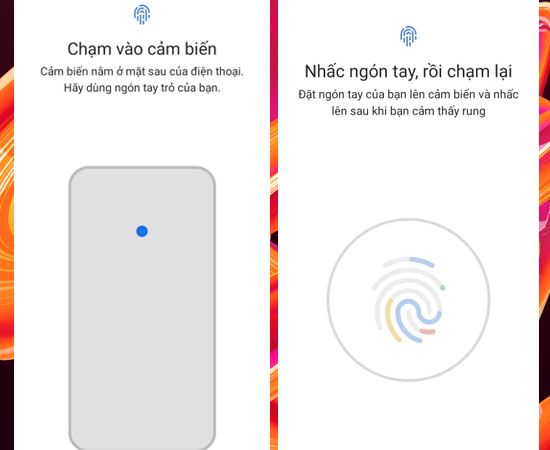 Chạm đôi ngón tay vào cảm biến ở mặt sau của điện thoại để tạo vết dấu vân tay cho tính năng bảo mật.