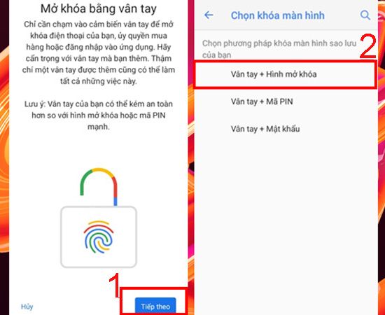 Bật tính năng bảo mật vân tay