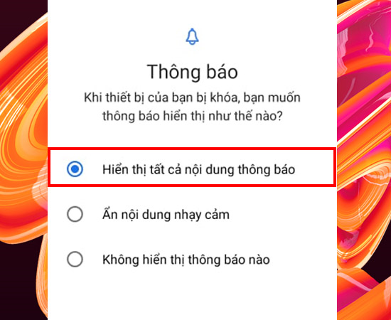 Chọn Hiển thị toàn bộ nội dung thông báo để nhận thông báo ngay cả khi màn hình đã bị khóa.
