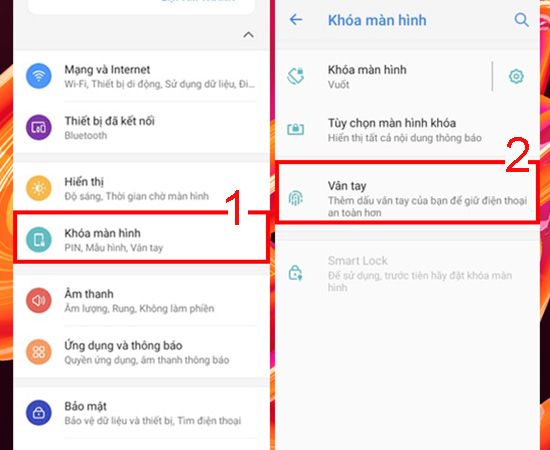 2. Bước 2: Bật tính năng bảo mật vân tay