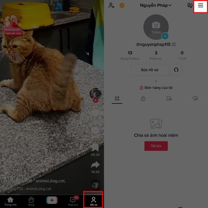 Bước 2: Sau khi cập nhật ứng dụng, mở ứng dụng và chọn tab hồ sơ. Tiếp theo, ấn dấu 3 gạch ngang ở góc phải màn hình.