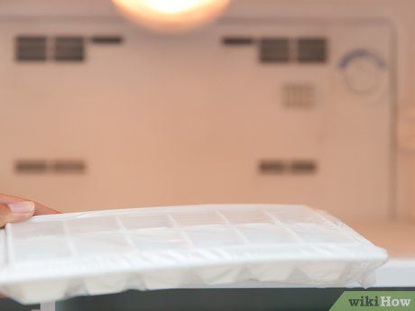 Đặt khay đá vào tủ đông. Để vài tiếng cho đến khi đá đông cứng.