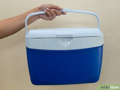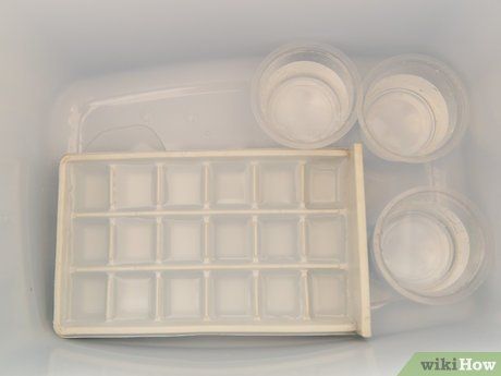 Đặt khay đá, khuôn hoặc hộp đựng vào đáy thùng giữ lạnh. Hãy giữ nắp thùng giữ lạnh mở. Chọn khay làm đá lớn hoặc sử dụng nhiều khuôn nhựa hoặc silicone nhỏ có hình chữ nhật nếu có thể.