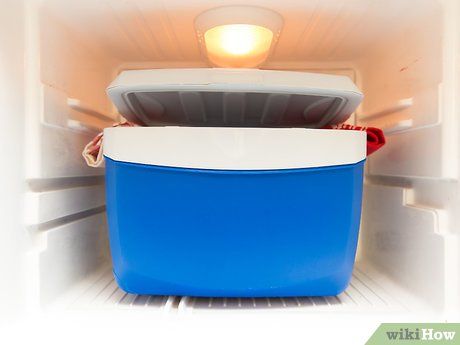Đặt thùng giữ lạnh không nắp vào tủ đông. Kiểm tra nhiệt độ tủ đông để đảm bảo từ -3 đến 8°C là lý tưởng. Để thùng giữ lạnh trong tủ đông khoảng 24 giờ.